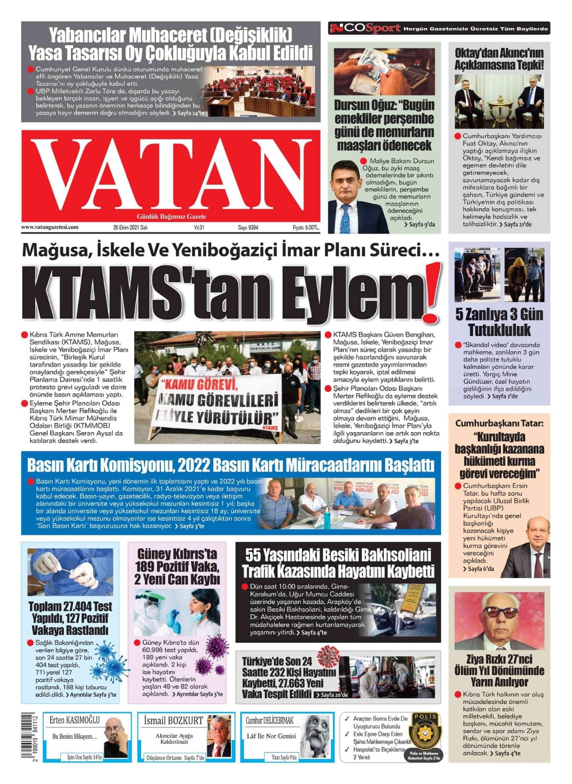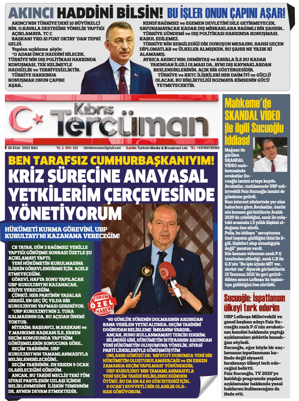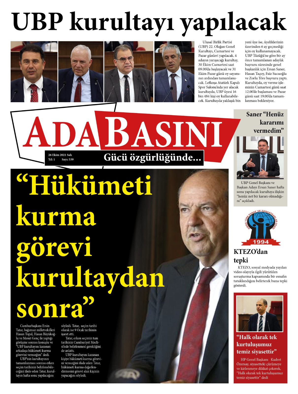 26 EKİM SALI KKTC GAZETE MANŞETLERİ « Bülten Kıbrıs