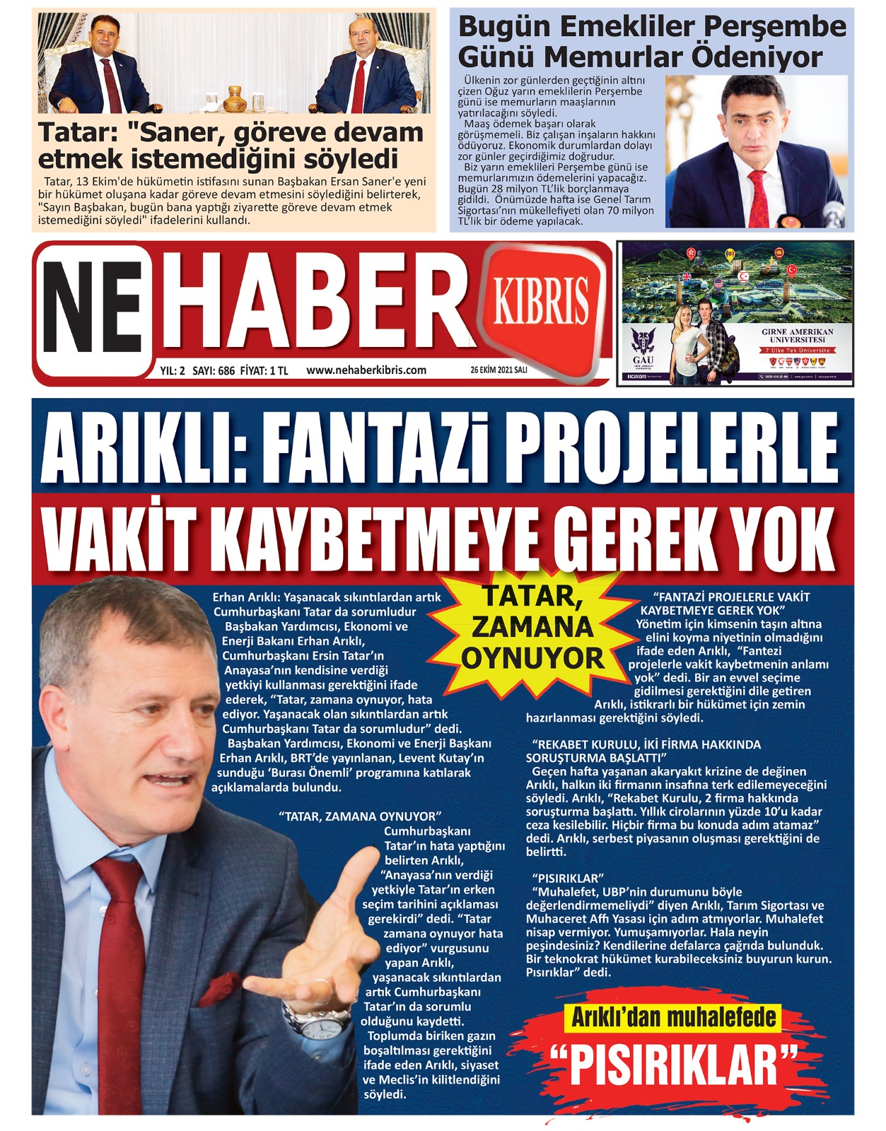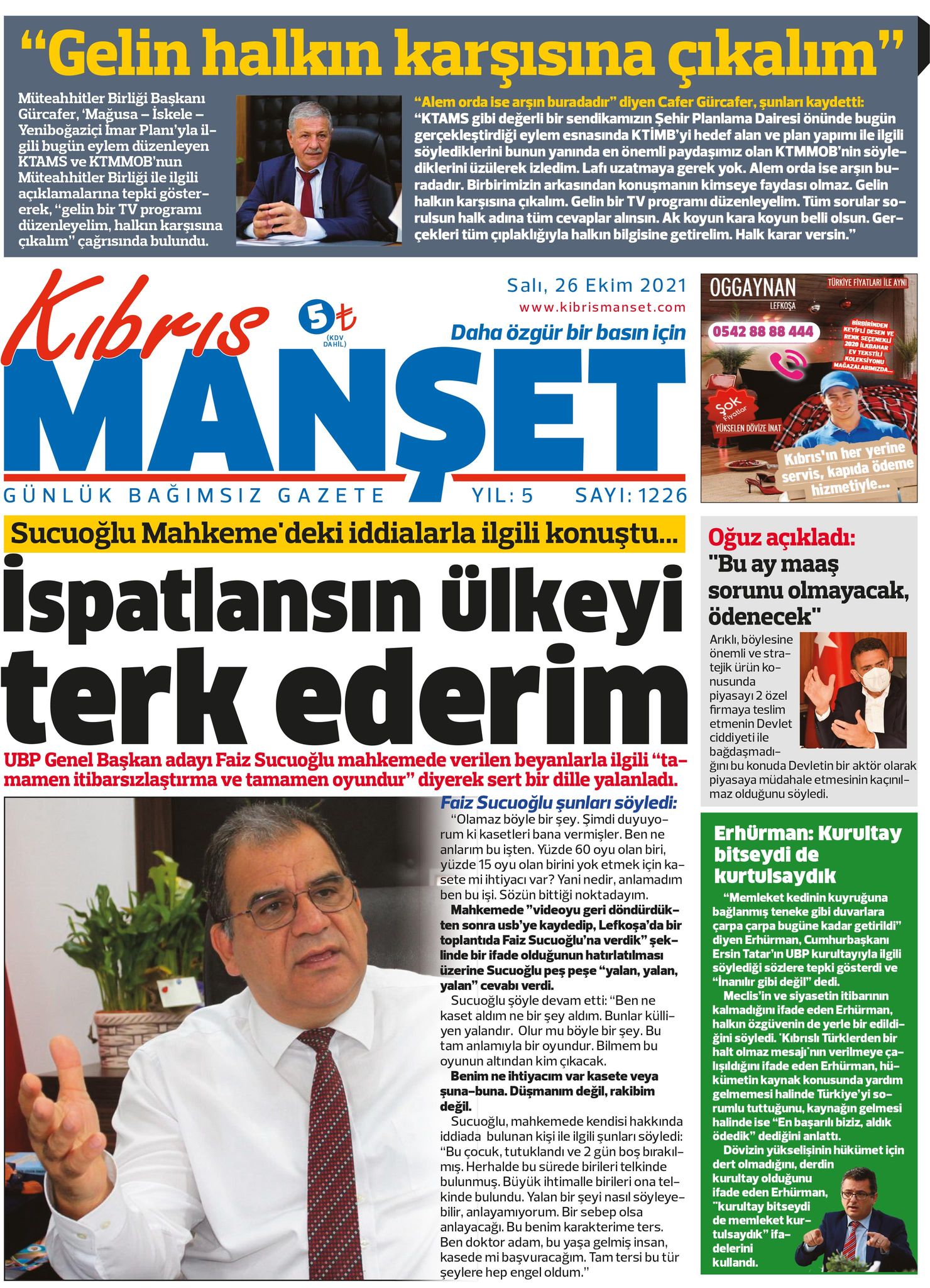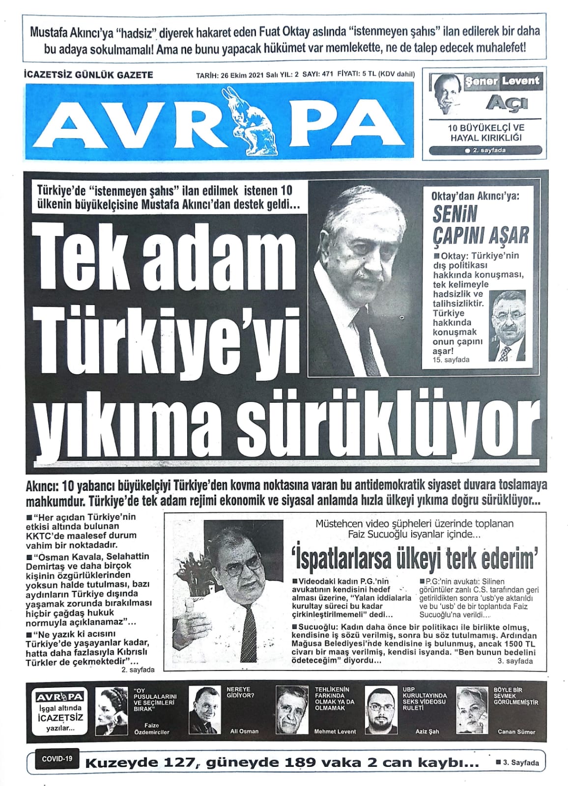 26 EKİM SALI KKTC GAZETE MANŞETLERİ « Bülten Kıbrıs