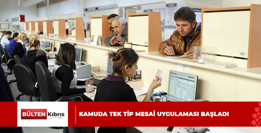 Kamudaki iş yerlerinde tek tip mesai uygulaması bugün başladı. Yapılan yasal düzenlemeye göre, bundan böyle yıl boyunca haftada 39 saat mesai yapılacak. Tek tip mesai düzenlemesinde pazartesi, salı, ...