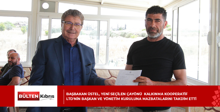 Başbakan Ünal Üstel, yakın zamanda gerçekleşen seçimi kazanarak göreve gelen Çayönü Kalkınma Kooperatif Ltd’in başkan ve yönetim kurulu üyelerine mazbatalarını takdim etti. Mazbata takdim töreni...