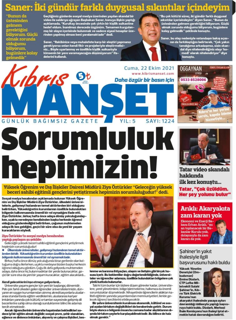 22 EKİM CUMA KKTC GAZETE MANŞETLERİ « Bülten Kıbrıs