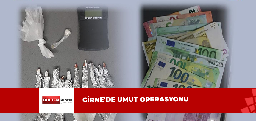 Girne’de, Narkotik ve Kaçakçılığı Önleme Müdürlüğü Ekipleri tarafından gerçekleştirilen operasyon (Umut Operasyonu) kapsamında, M.A.S.(E-22) ve Z.B.(E-23)’nin kalmakta oldukları ikametgahta yapılan ar...