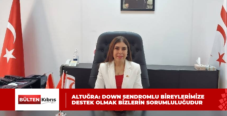 Sağlık Bakanı İzlem Gürçağ Altuğra 21 Mart Down Sendromlular Günü nedeniyle mesaj yayımladı. Bakan Altuğra şu ifadelerde bulundu; Birleşmiş Milletler 2011 yılında Down Sendromu ile ilgili farkındalık ...