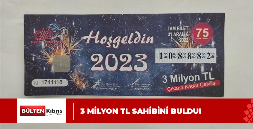 Devlet Piyangosu’nun 31 Aralık 2022 tarihli çekilişinde 3 Milyon TL’lik büyük ikramiyenin talihlisine teslim edildiği açıklandı. Birimden yapılan açıklamada, Yılbaşı Özel çekilişinde 3 Milyon TL’lik r...
