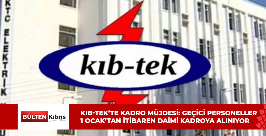 Başbakanlığa bağlı Kıbrıs Türk Elektrik Kurumu’nda geçici statüsü ile görev yapan personellere yeni yıl müjdesi verildi. Kıbrıs Türk Elekrik Kurumu (KIB-TEK) bünyesinde görev yapan geçici personeller,...