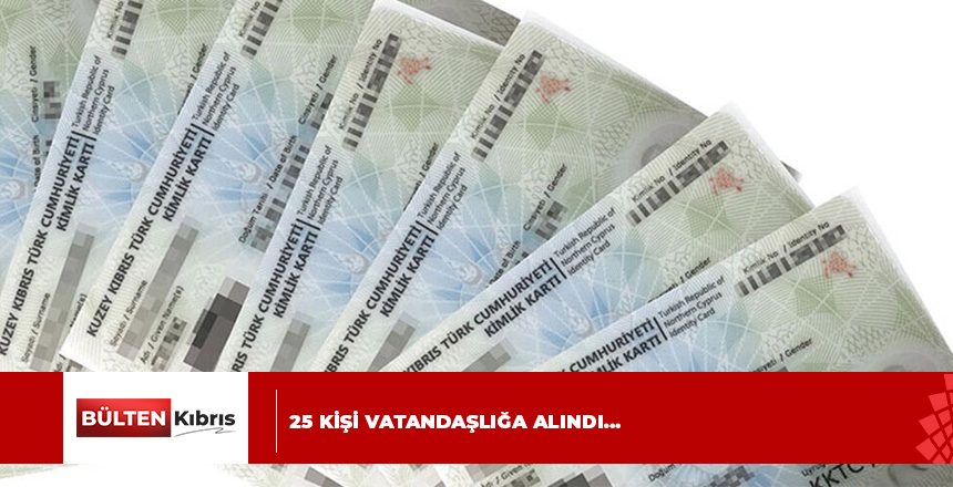 Bakanlar Kurulu, 25 kişinin KKTC yurttaşlığına alınması yönünde karar üretti. Karar, dünkü Resmi Gazete’de yayımlanarak yürürlüğe girdi. Yurttaşlık hakkı verilen kişilerin isimleri Resmi Gazete’de yay...