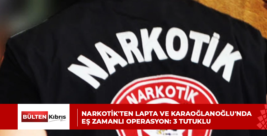 Narkotik ve Kaçakçılığı Önleme Müdürlüğü ekipleri tarafından bugün Lapta ve Karaoğlanoğlu’nda eş zamanlı gerçekleştirilen operasyon kapsamında 3 kişi tutuklandı. Narkotik ve Kaçakçılığı Önleme M...