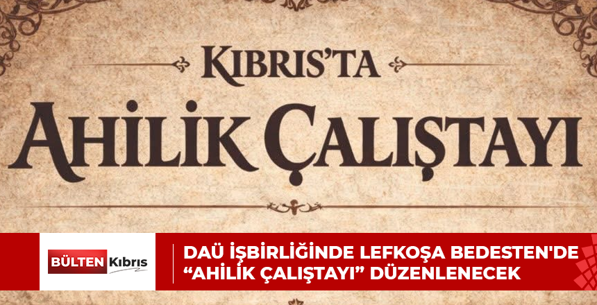 Ahilik mirası Kıbrıs’ta ilk kez Doğu Akdeniz Üniversitesi iş birliğinde düzenlenecek çalıştayla ele alınacak. DAÜ’den verilen bilgiye göre, 9 Ocak Cuma günü saat 09.30’da Lefkoşa Bedesten’de yer alaca...